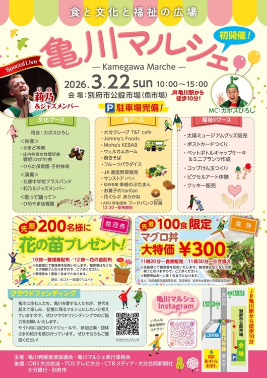 亀川マルシェを開催します!ぜひお越しください。