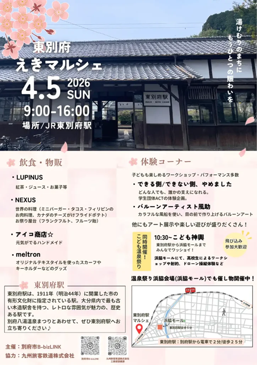 そんな趣ある駅舎を舞台に、「子どもも大人も一緒に楽しめる“いつもの場所”づくり」をテーマに東別府えきマルシェを開催します!