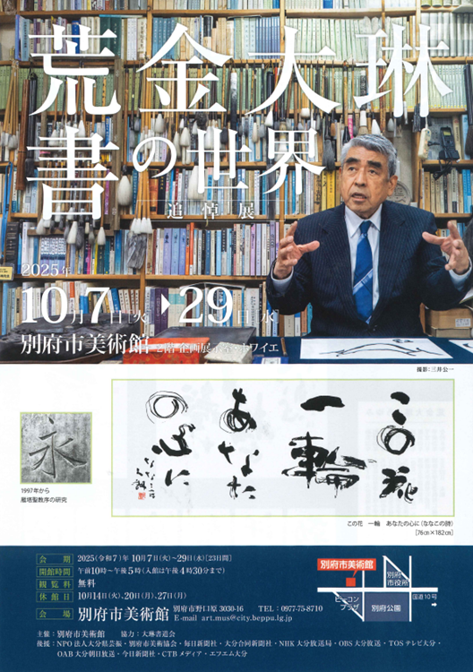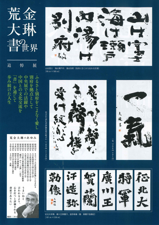 前別府市別府美術館運営協議会会長、前別府市美術協会会長として別府市の芸術文化の振興に貢献した書道家荒金大琳氏の追悼作品展