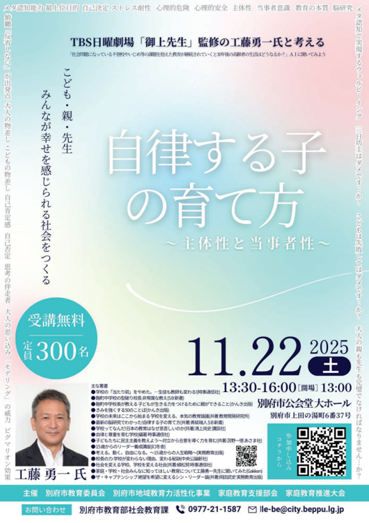 今年度は講師に、玉川大学教育学部教授 大豆生田 啓友(おおまめうだ ひろとも)先生をお迎えし、「『子どもまんなか社会』での幸せ子育てのコツ」をテーマに御講演いただきます。たくさんの子育てママたちの悩みと関わってきたマメ先生、子育てに悩んでいる方の心に寄り添うお話が聴ける講演会です。みなさまのご参加お待ちしています!