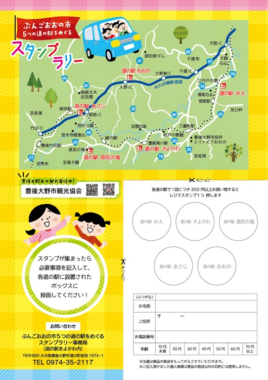 ぶんごおおの市5つの道の駅をめぐるスタンプラリー事務局(道の駅きよかわ内)