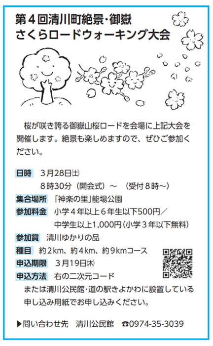 桜が咲き誇る御嶽山桜ロードを会場に上記大会を開催します。絶景も楽しめますので、ぜひご参加ください。