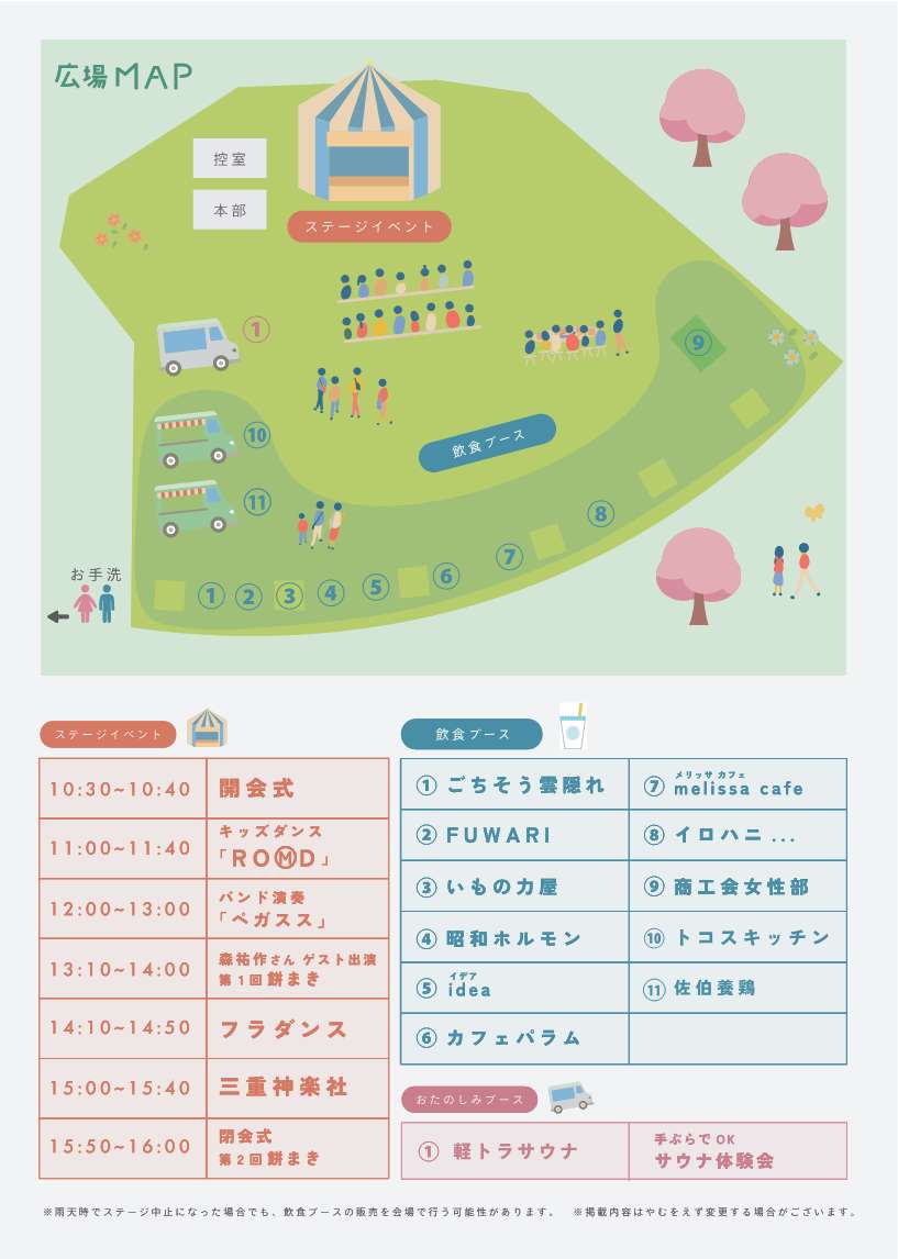 ※雨天時でイベント開催中止になった場合でも、飲食ブースの販売を会場で行う可能性があります。