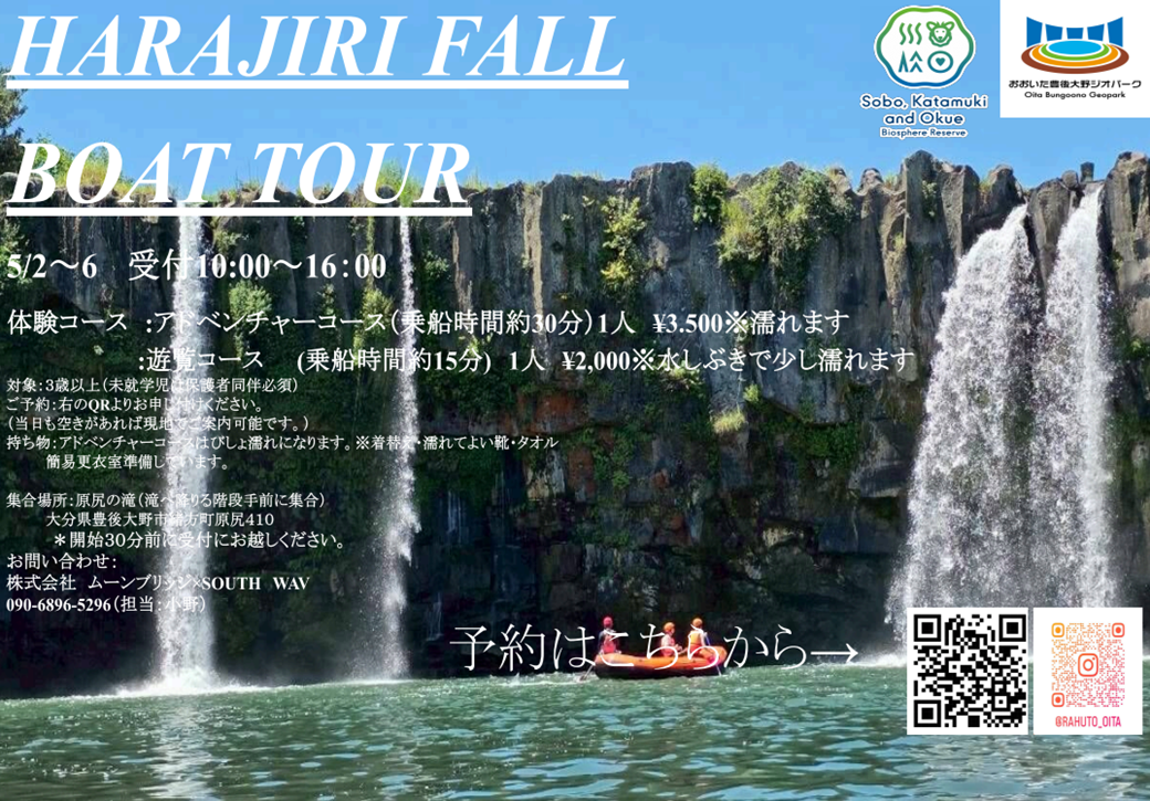 ・ツーリズムおおいた「【参加者募集】原尻の滝ボートツアー<5月2日~ 5月6日開催>」