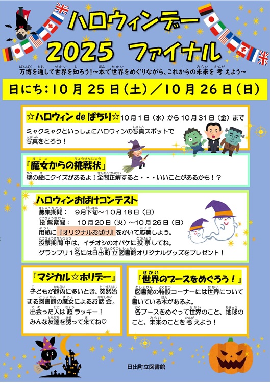 用紙に『オリジナルおばけ』をかいて応募しよう!投票期間中は、イチオシのオバケに投票してね。グランプリ1名には日出町立図書館オリジナルグッズをプレゼント!