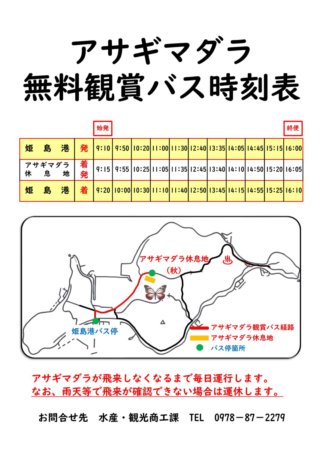 10月25日(土)より、アサギマダラの無料観賞バスを運行しますので、ご利用ください。