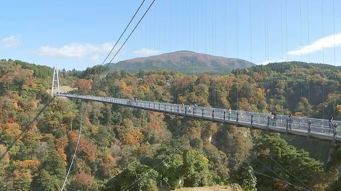 ようやく紅葉シーズンが訪れました。大分県九重町の九重“夢”大吊橋周辺では、赤や黄色に染まった木々が観光客を出迎えてくれます。