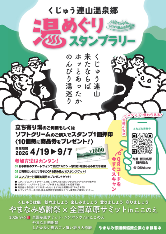 大人気企画「~くじゅう連山温泉郷~湯めぐりスタンプラリー」が今年も始まります。