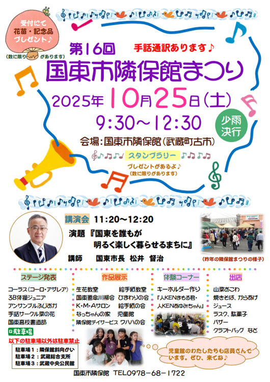 国東市隣保館では、福祉の向上や人権啓発の住民交流の拠点となる開かれたコミュニティーセンターとしての役割を担うため、あらゆる世代が集い交流する『国東市隣保館まつり』を開催します。館内では、主催教室生や隣保館利用者などのステージ発表、作品展示、人権キーホルダーをつくる体験コーナーがあります。また、屋外では福祉事業所や更生保護女性会などの出店があり、皆さんが楽しめる内容になっています。多くの皆様のご来場をお待ちしています。