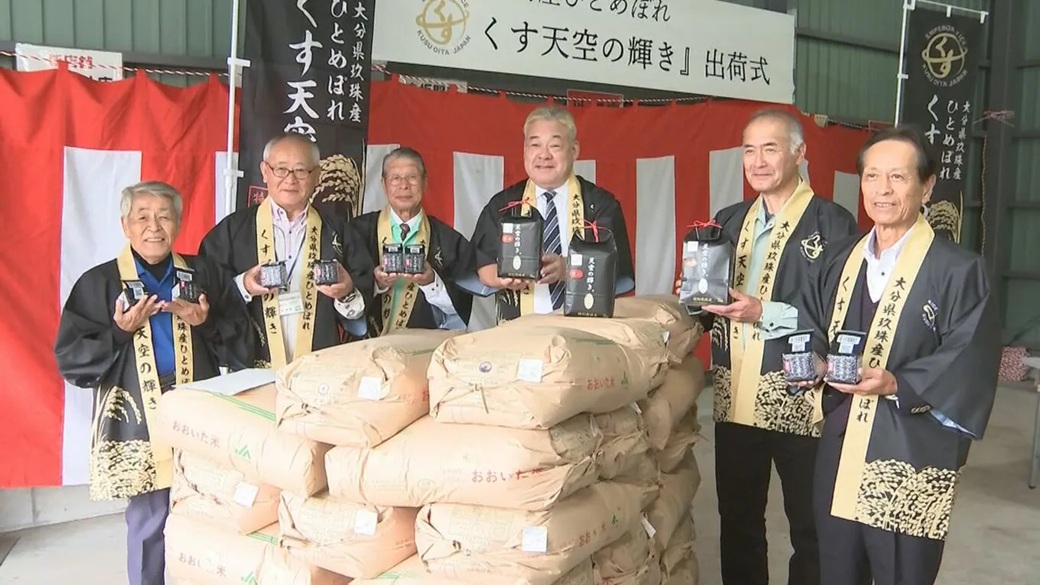 人工衛星を活用して栽培された大分県玖珠町の新しいブランド米「くす天空の輝き」の初めての出荷式が行われました。