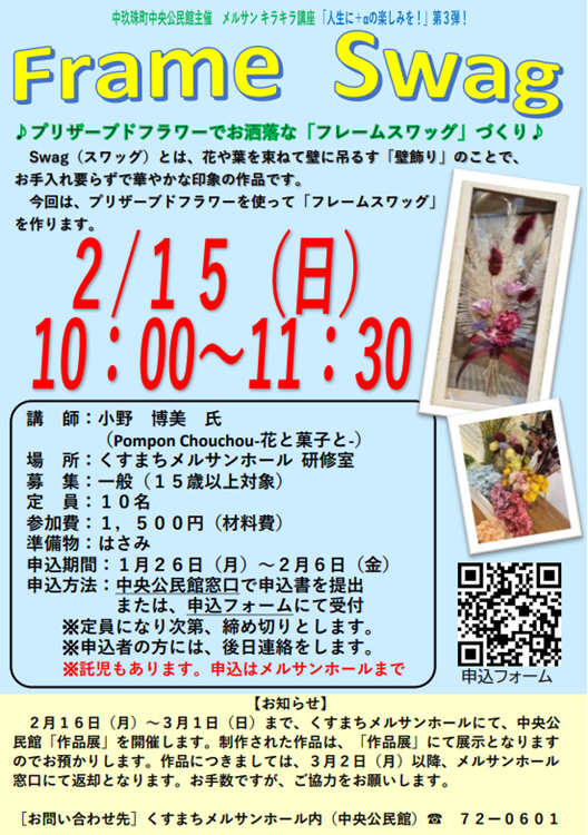 ※託児もあります。申込はメルサンホールまで。