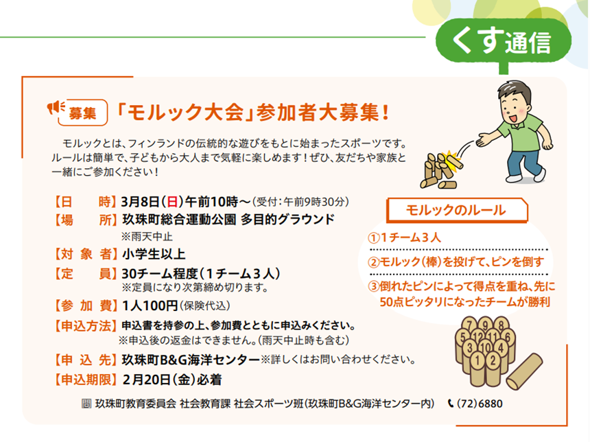 モルックとは、フィンランドの伝統的な遊びをもとに始まったスポーツです。ルールは簡単で、子どもから大人まで楽しめます!ぜひ、お友だちや家族と一緒にご参加ください!