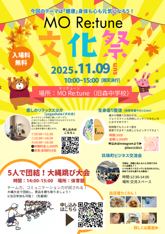 玖珠町サテライトオフィス「MORe:tune(モリチューン)」で第3回目となるマルシェイベント「MORe:tune(モリチューン)文化祭」を開催します!