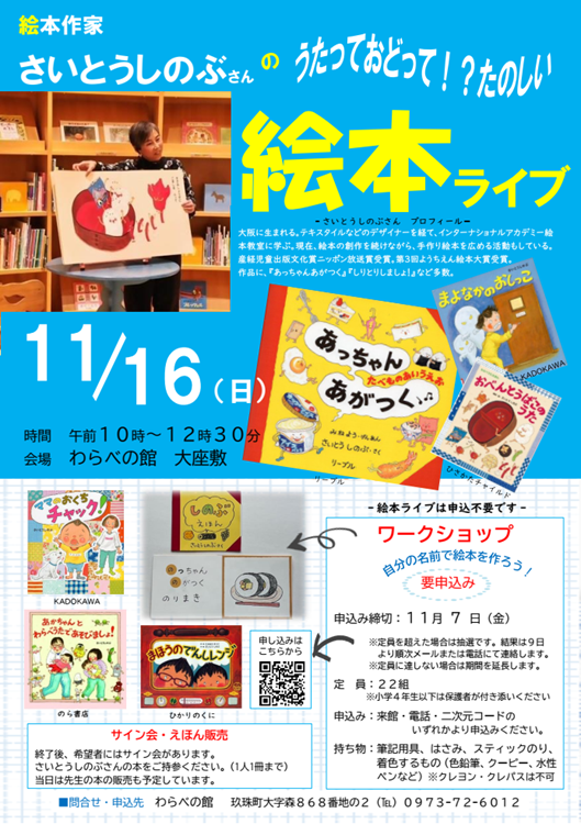※絵本ライブは申込不要。ワークショップは申込が必要です。