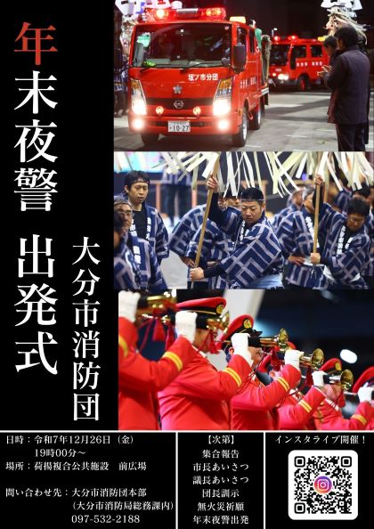大分市消防団が12月27日から4日間、地域の安全安心を守るため、年末夜警を行います。