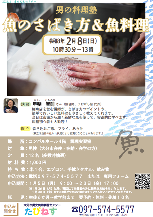誰かが調理したものを食べるだけでなく、自分の手で1匹の魚を最高の一皿にしてみませんか。「自分の食べたいものを自分で作る自立した男性」になるための第1歩です!これを機にキッチンが格好いい趣味の場に変わるかもしれません。