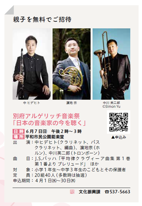 ・大分市「第26回別府アルゲリッチ音楽祭「日本の音楽家の今を聴くVol.3 at 能楽堂」大分市親子無料招待を行います」