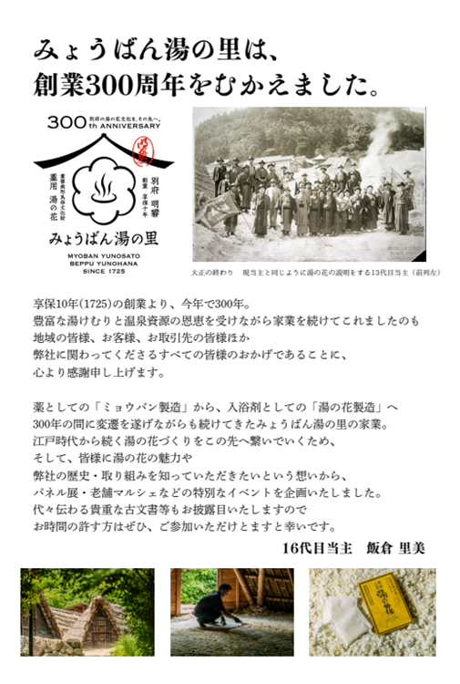 享保10年(1725)に創業したみょうばん湯の里は、今年で300年を迎えます。