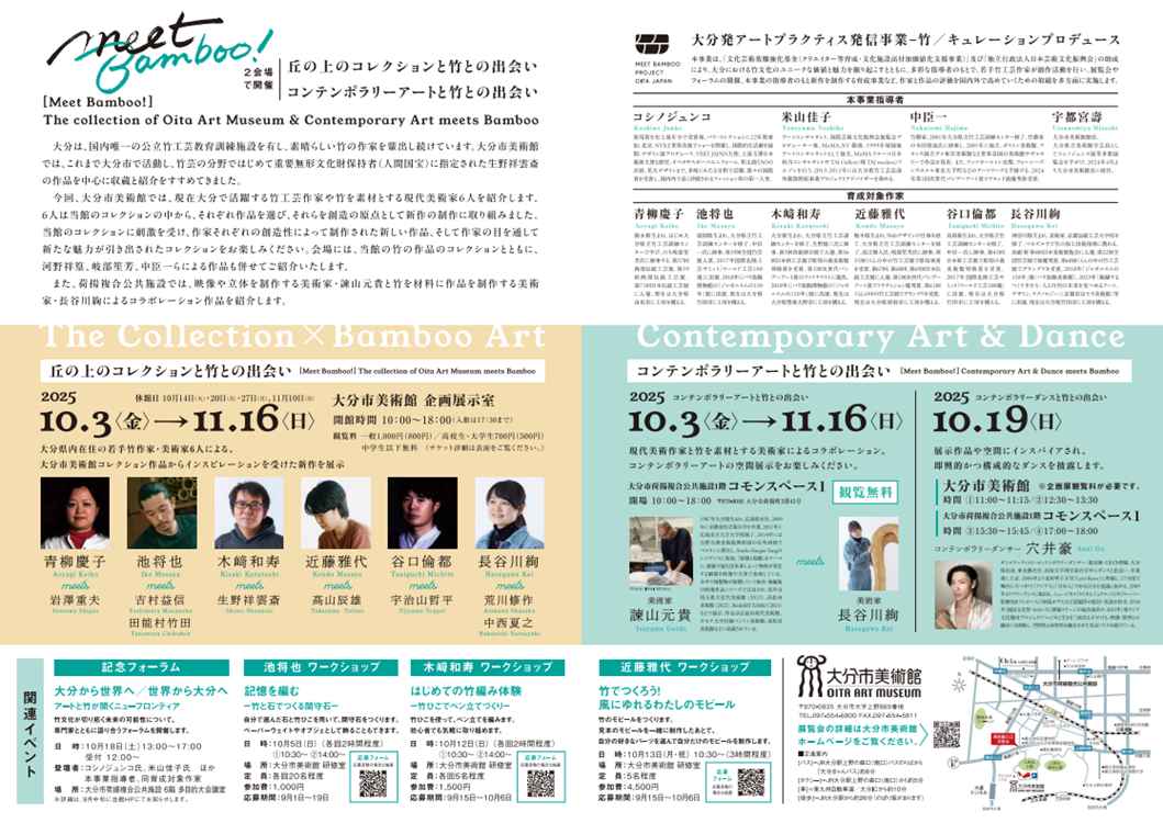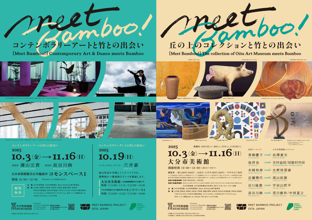 本展は、次世代のクリエイター・アーティストの育成および発信の場となる文化施設の機能強化を目的とした「クリエイター等育成・文化施設高付加価値化支援事業」における「大分発アートプラクティス発信事業―竹/キュレーション・プロデュース MEET BAMBOO PROJECT OITA JAPAN」の一環です。