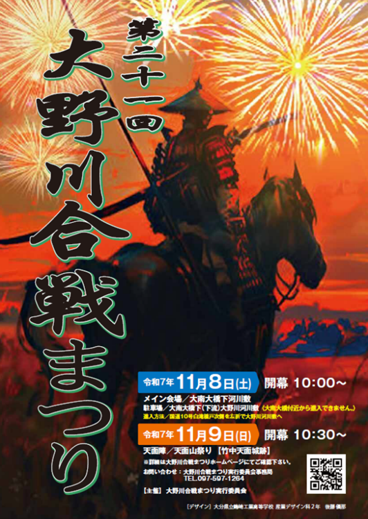 天正14年(1586年)の大友・四国連合軍と島津軍が激突した「戸次川の戦い」を後世に伝え、「青少年に夢を、ふるさと大分に輝きを!」をキャッチフレーズに、地域内外の住民の交流と地域の活性化を目指し、『第21回大野川合戦まつり』が開催されます。