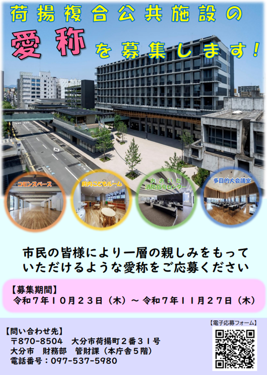 荷揚複合公共施設は、令和6年4月1日の供用開始以来、多くの方にご利用いただいており、より一層親しみを持っていただけるよう、皆さんの想いやイメージを反映した“愛称”を募集することになりました。 施設の魅力をより身近に感じていただけるような、素敵な愛称をぜひお寄せください。なお、採用された愛称は、今後の広報や案内表示などに使用される予定です。