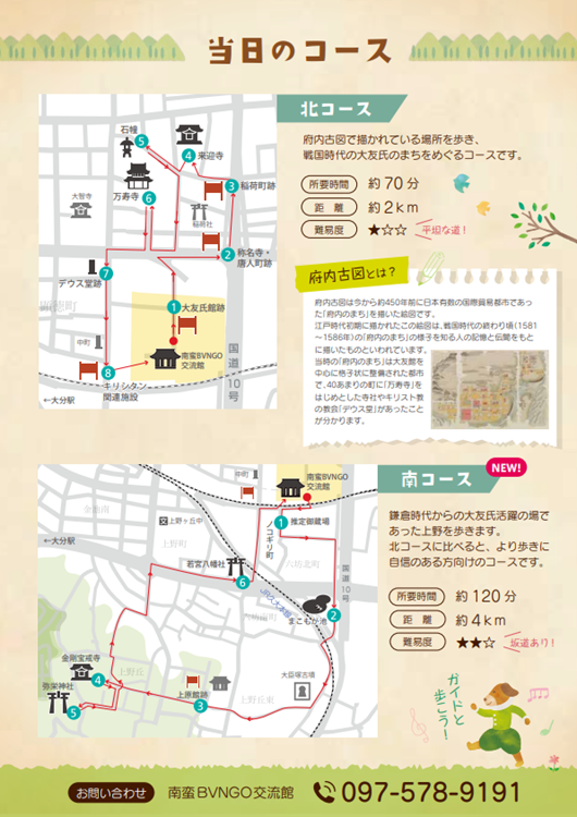 府内古図に描かれている戦国時代の府内のまちを歩きます。平坦で距離も短い初心者向けのコースです。