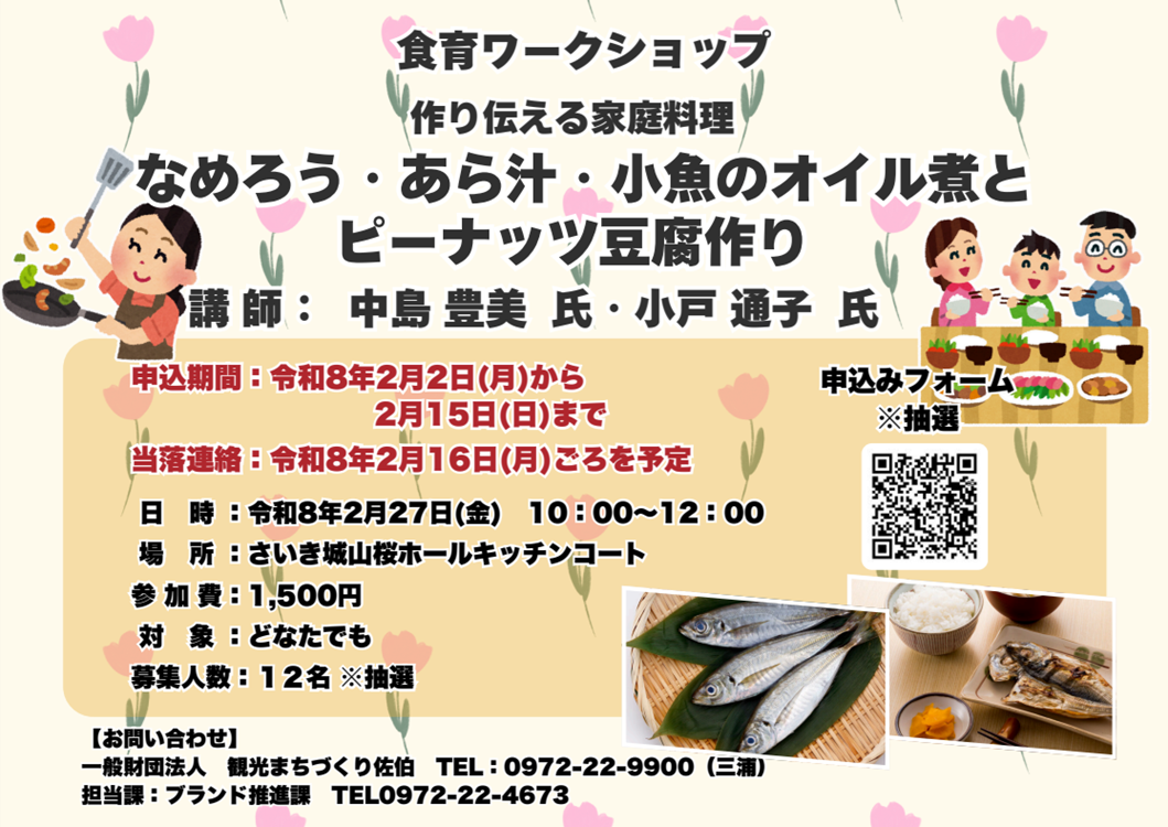 2月の蒲江特集第3弾は、蒲江のお母さんから、なめろう・あら汁・小魚のオイル煮・ピーナッツ豆腐の作り方を教わります。