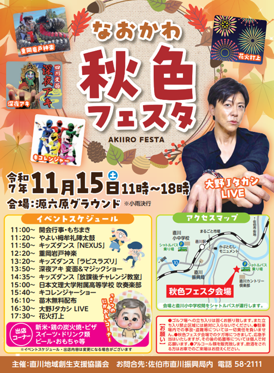・直川小・中学校周辺(会場への無料シャトルバスを運行します。)