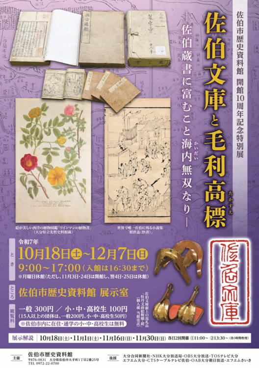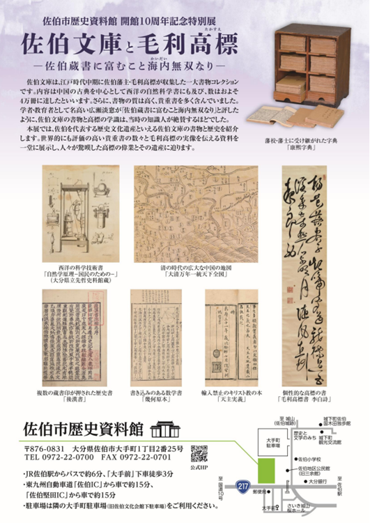 佐伯文庫は、江戸時代に佐伯藩主・毛利高標が収集した膨大な書物のコレクションです。中国の古典、西洋の科学書など、様々な本が4万冊もあったといわれ、佐伯文庫の書物と高標の学識は、当時の知識人から絶賛されました。