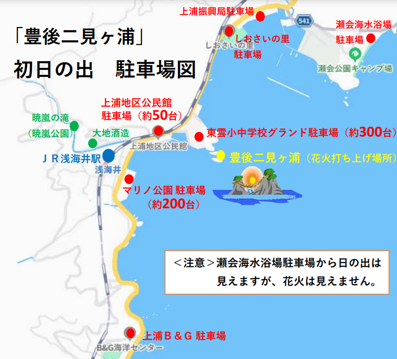 初日の出の直前に、豊後二見ヶ浦から花火を打ち上げます!