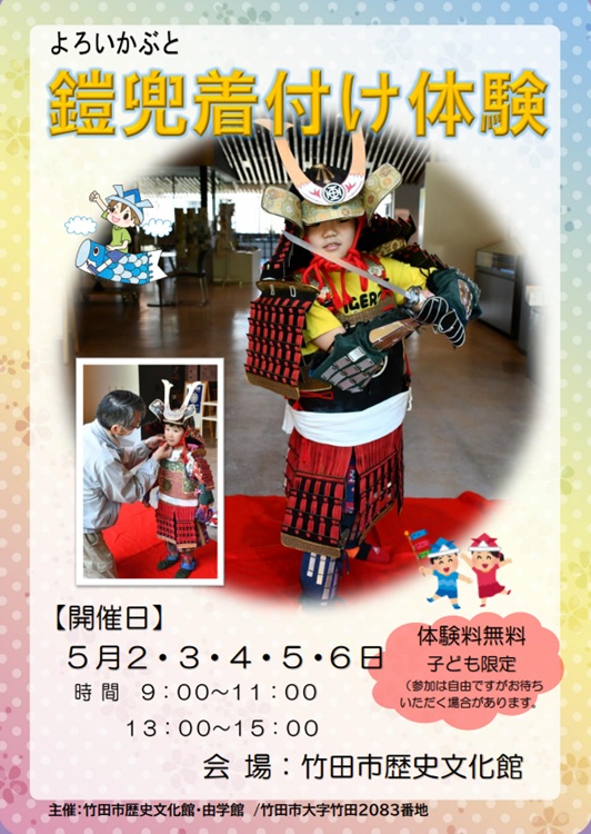 ・竹田市「由学館ワークショップ「鎧兜(よろいかぶと)着付け体験」」