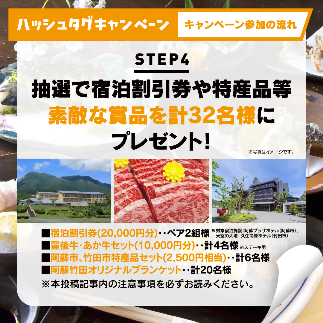 阿蘇竹田ブランド観光地域づくり推進協議会(事務局:竹田市商工観光課)では、阿蘇市・竹田市の魅力をもっと多くの方に知っていただくため、「自然・癒し×SNS映え」をテーマとしたハッシュタグキャンペーンを実施しています。阿蘇市・竹田市で見つけた素敵な風景やグルメ、温泉などを撮って、指定のハッシュタグをつけて投稿してください!
