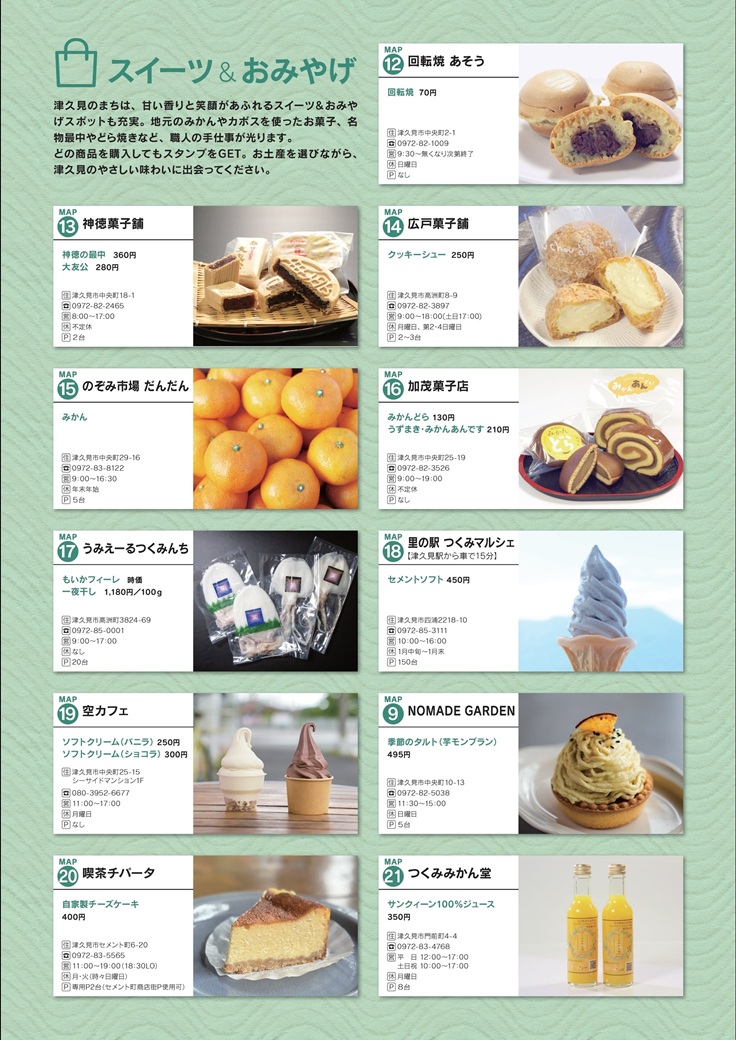 抽選で津久見の特産品やお食事券など、うれしい賞品が当たります。モイカを味わい、津久見のまち歩きを楽しみながら、スタンプを集めてみませんか?