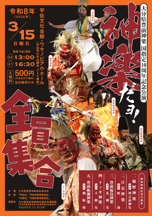 大分県豊前神楽 国指定10周年を記念して、「神楽だヨ!全員集合」が開催されます。