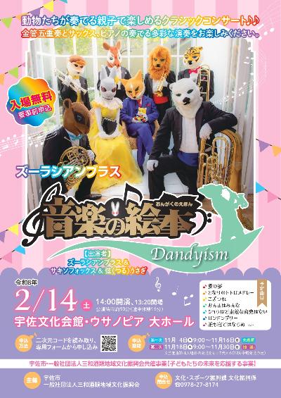 『音楽の絵本』はクラシック音楽における絵本のような役割が出来ればと2000年に誕生。指揮者のオカピや、金管五重奏のズーラシアンブラス、弦うさぎやサキソンフォックスが登場。おなじみのクラシックの名曲から、みんなが知っている曲まで、ユーモアたっぷりの演出と迫力のある生演奏でお子さまと一緒に楽しめます。遊び心あふれるステージは、まさに「音楽の絵本」ぜひご来場ください。