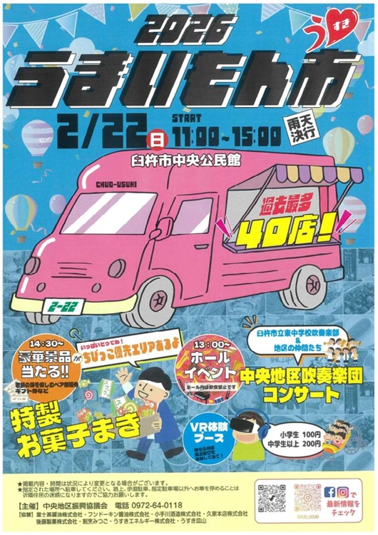過去最多の40台のキッチンカー出店をはじめ、吹奏楽団の演奏やお菓子まきなど家族みんなで楽しめるイベントです。