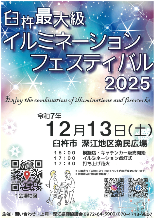 小さな漁村がイルミネーションと打ち上げ花火で彩られるイベントを開催!花火の打ち上げやキッチンカーなどの出店もありますので、ぜひお出かけください。