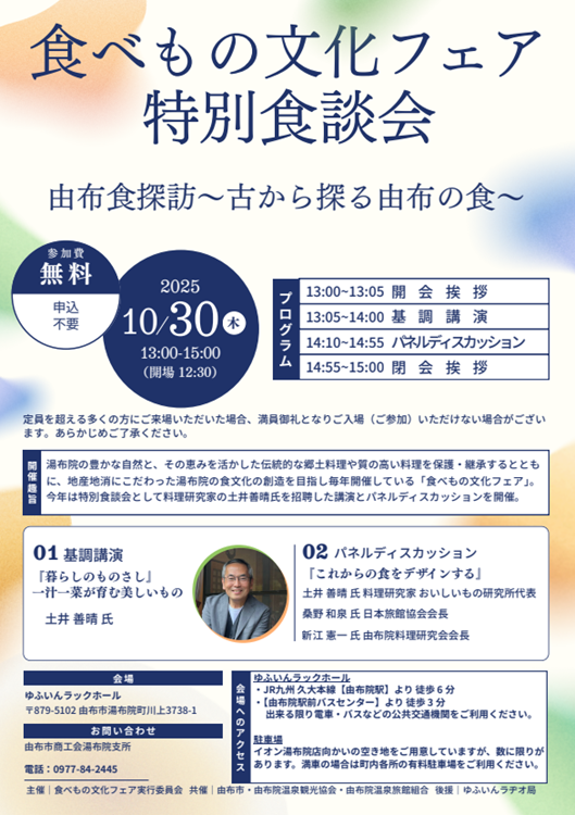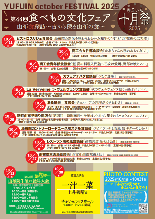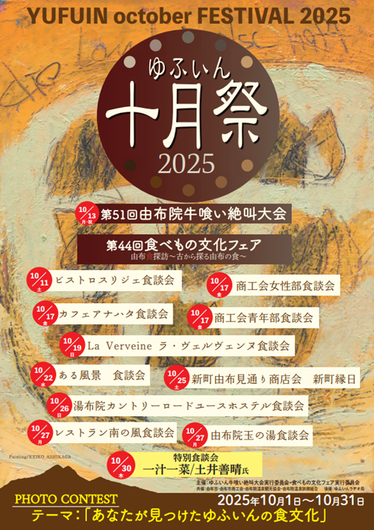 令和7 年度は、「あなたが見つけたゆふいんの食文化」をテーマとし、期間中は湯布院町内の旅館や飲食店が、様々なテーマをもとに行う「食」のイベントです。